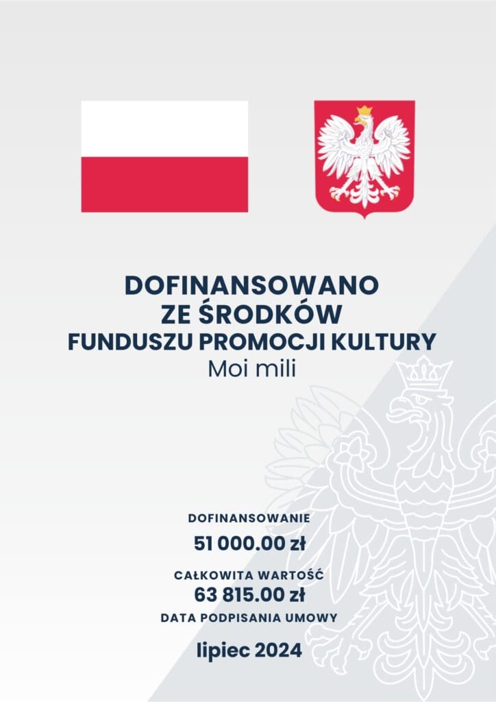 Dofinansowano ze środków Ministra Kultury i Dziedzictwa Narodowego pochodzących z Funduszu Promocji Kultury – państwowego funduszu celowego